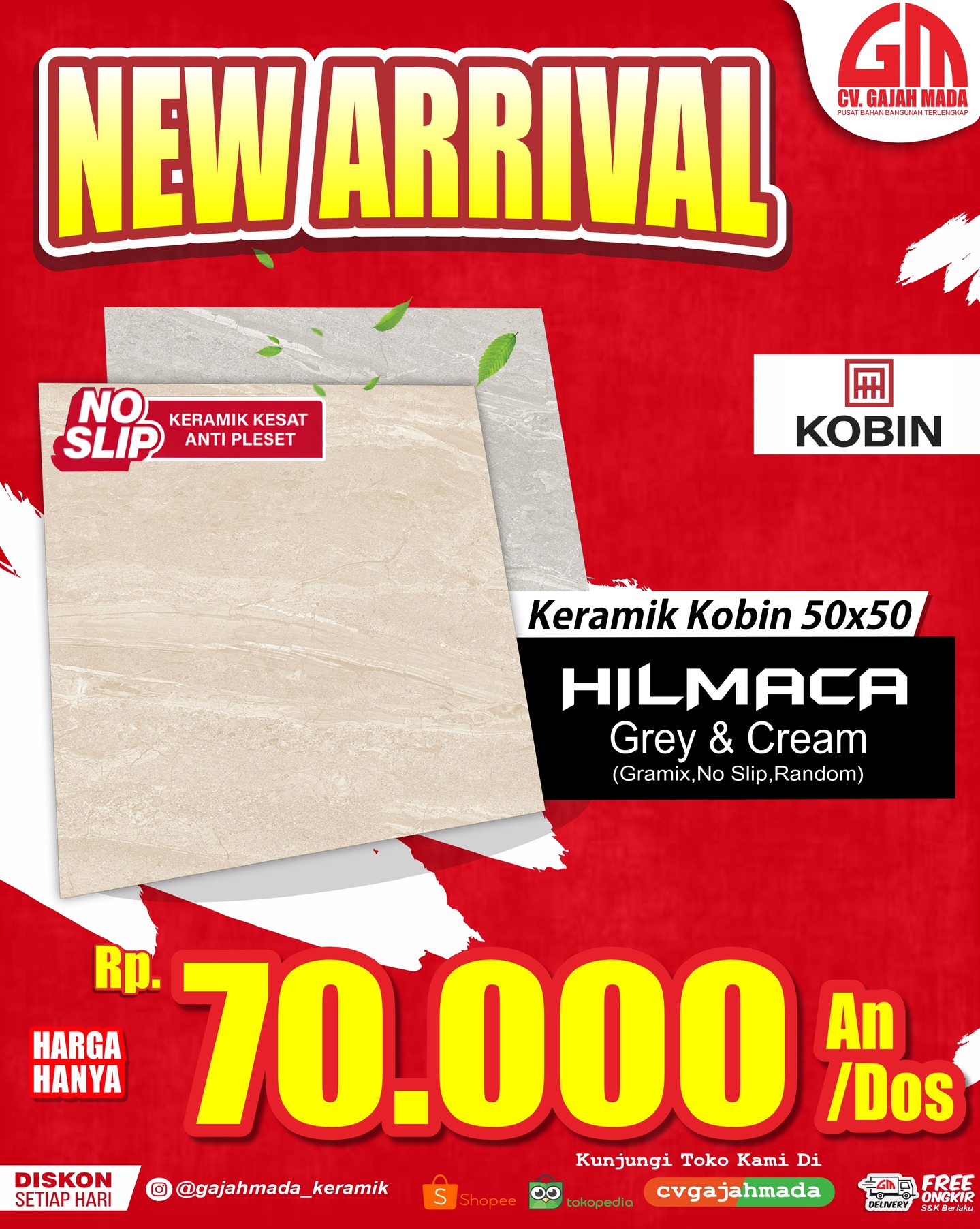 Hadir produk keramik terbaru dengan desain modern dan kualitas premium untuk mempercantik setiap sudut rumah Anda. Tahan lama, mudah dibersihkan, dan tersedia dalam berbagai motif elegan.